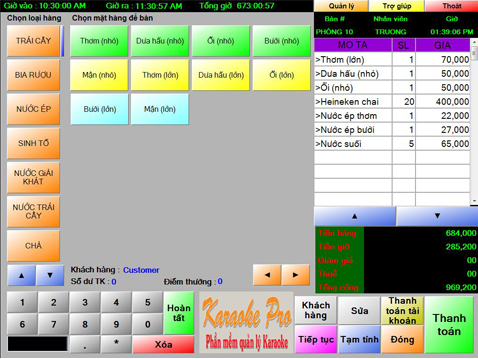- Quản lý nhiều phòng hát với các loại đơn giá phòng khác nhau